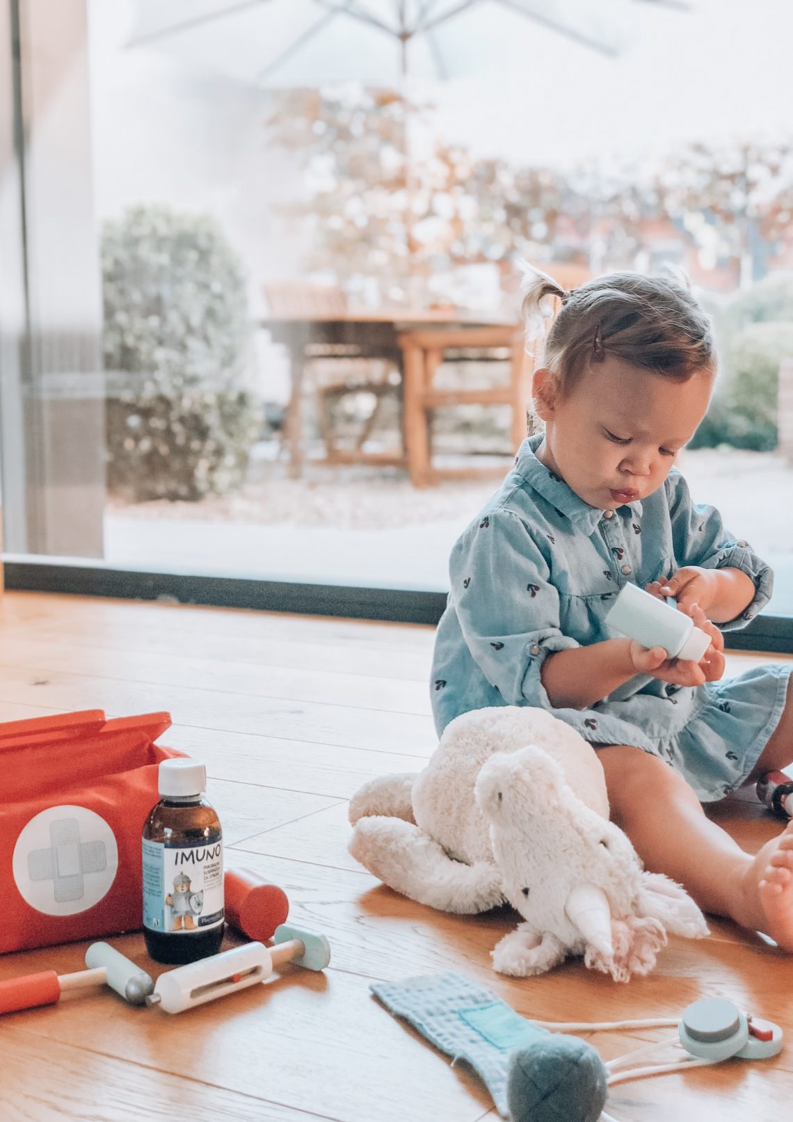 - Fitobimbi IMUNO: krepi imunski sistem, prispeva k naravni obrambi telesa in podpira naravni obrambni mehanizem. Juliji ga dam kot preventivo, vsak večer pred obrokom 1 žličko.
