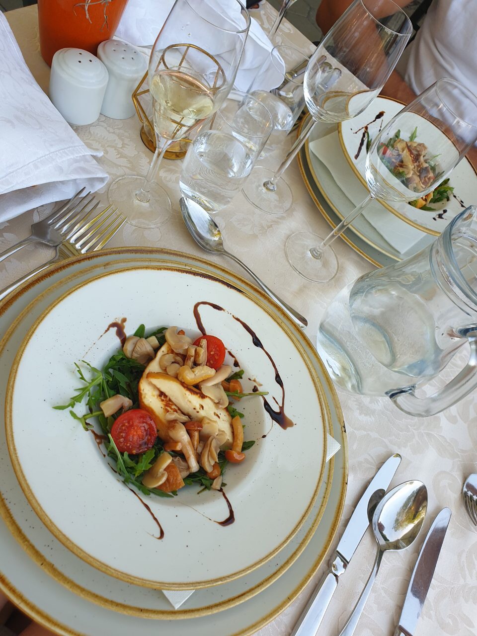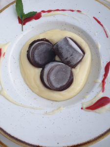 Če se želite malo pocrkljati, se lahko odpravite v dvorec Mihanović, ki je od hotela oddaljen le nekaj korakov, ponuja pa bolj intimno vzdušje in vrhunsko kulinariko. Midva sva se pri meniju pustila presenetit in nisva bila niti malo razočarana – vsi štirje hodi so bili definitivno vredni obiska. Julijo je najbolj navdušila juha iz mladega graha, Jako domači bananin sladoled s čokolado, vsi pa smo se strinjali, da se tja še vrnemo.